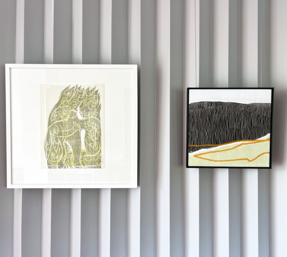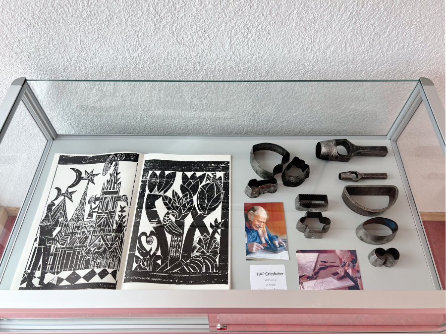 Auf der einen Seite HAP Grieshaber mit seiner charakteristischen, direkten, klaren Formensprache die er auf der Druckerpresse in Auflagen druckte. Auf der anderen Seite Tanja Niederfelds feine Linien und sich lasierend überlagernde Farbschichten in handgedruckten Unikaten.